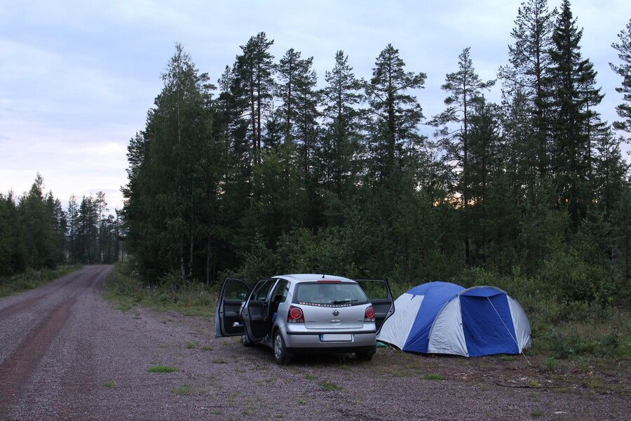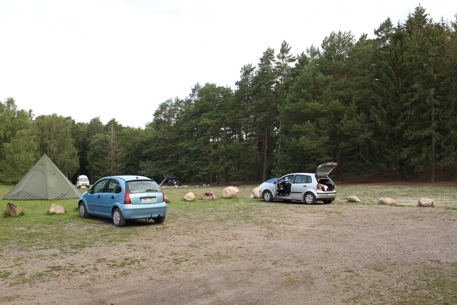 Po godz. 21:00 docieramy na bezpłatny kemping Raftarps. Kemping jest bardzo ładny i czysty, przy lesie. Z infrastruktury znajdziemy tu toalety i ciepłą wodę w kranach. Pryszniców brak. Oprócz nas nocuje tu jeszcze kilka osób.
