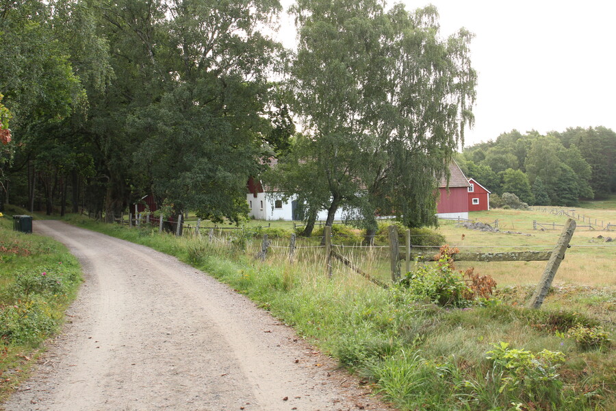 Zbieramy szybko rzeczy z kempingu, żeby zdążyć przed deszczem i o godz. 8:50 wyruszamy w dalszą trasę. Kierując się na północ mijamy mniejsze i większe miejscowości z charakterystycznymi dla Szwecji, czerwonymi domami i zabudowaniami. Na chwilę zatrzymujemy się nad Jeziorem Vanern. Na trasie pojawia się coraz więcej kamperów. Sama droga, prawie w całości przebiegająca przez tereny zielone i lasy, nie sprawia większych trudności. Czasem bywa nawet trochę nużąca. Bardzo dobrze są tu oznaczone ograniczenia prędkości. Kierowca nie ma chwili zawahania nad tym czy właśnie przejeżdża przez teren zabudowany czy niezabudowany. Należy jedynie pilnować prędkości, ponieważ na południu Szwecji co chwila jest fotoradar, a mandaty w tym kraju kosmicznie wysokie. Co jakiś czas pojawia się też znak, informujący że w tym miejscu jest kemping. W zasadzie znaków z informacją o kempingach jest więcej niż znaków z nazwą miejscowości.