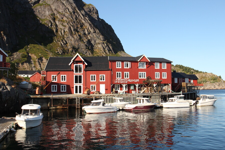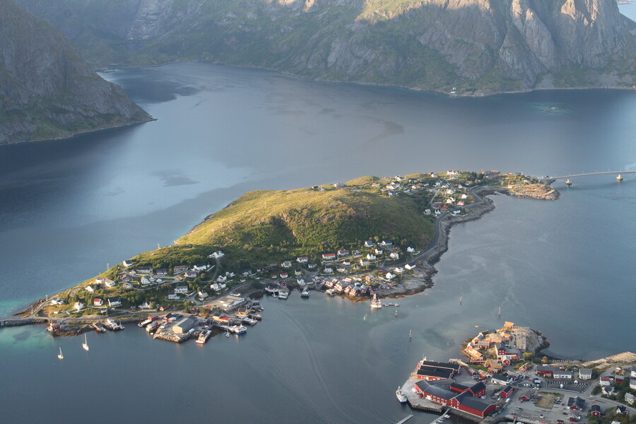 Miasteczko Reine położone jest na wyspach, które kiedyś nie były połączone drogą. Mieszkańcy przemieszczali się między nimi łodziami.