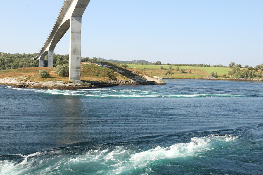 Jedziemy do Bodo. Po drodze wstępujemy do cieśniny Saltstraumen. To niewielka cieśnina z jednym z najsilniejszych prądów pływowych na całym świecie. Wiry wodne obserwujemy z mostu i brzegu. Można też je zobaczyć z motorówki. Cieśnina cieszy się popularnością także wśród wędkarzy.