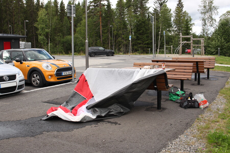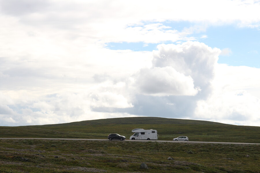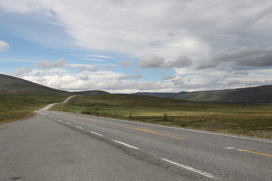 Wieczorem napotykamy na pierwszy zamknięty odcinek drogi E6. Drogi na południu Norwegii są pozamykane z powodu sztormu o nazwie Hans, o którym wcześniej czytaliśmy. Jedziemy objazdem. W okolice Trondheim docieramy dopiero koło północy.