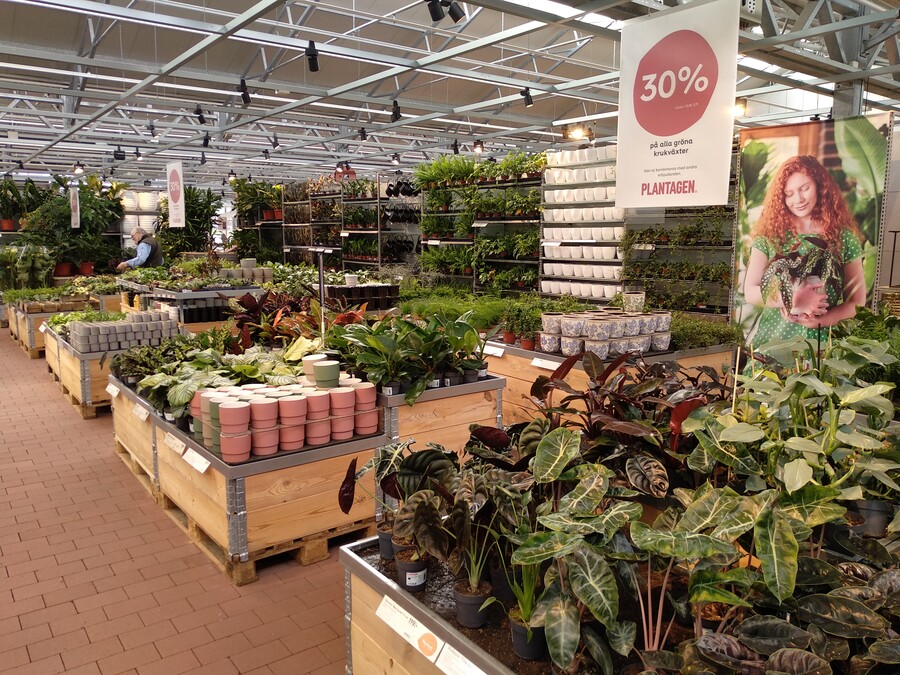 Po drodze wstępujemy do sklepu ogrodniczego Plantagen. Ta sieć sklepów w Szwecji i Norwegii zwróciła naszą uwagę już dawno, ponieważ sam budynek wygląda jak wielka szklarnia. Mnóstwo tu różnych roślin. Może lepiej, że nie ma dużo miejsca w samochodzie. Kupujemy jedynie po przecenie dwie ceramiczne figurki kotów.