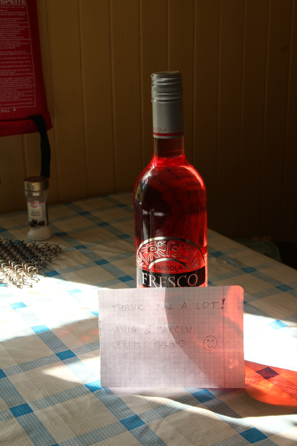 Gdy wychodzimy dom jest pusty. Na stole zostawiamy butelkę wina z Polski z karteczką z podziękowaniami za gościnę.
