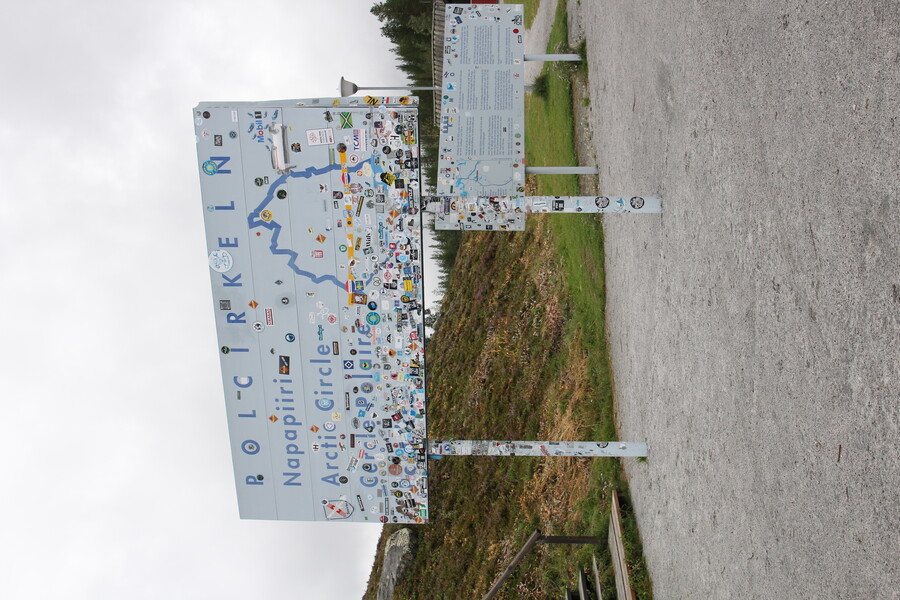 Zatrzymujemy się obok znaku wskazującego, że przekraczamy koło podbiegunowe. Oprócz tablicy, są tu kawiarnia i sklep z pamiątkami.
