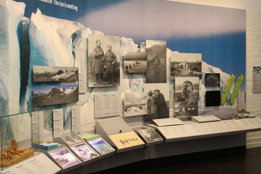 W muzeum znajduje się między innymi kamień oznaczony przez pierwszych podróżników, któzy tu dotarli