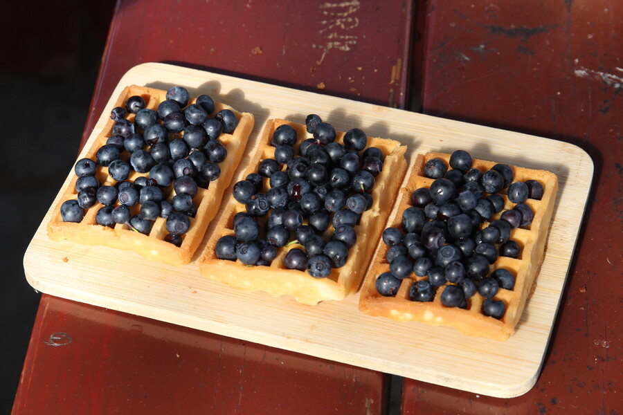 W międzyczasie zatrzymujemy się jeszcze w lesie na jagody. Żeby nie przemoczyć znów butów, bo ciągle pada, zbieramy je w klapkach. Jagody są wielkie jak polskie borówki, więc szybko napełniamy pojemnik.