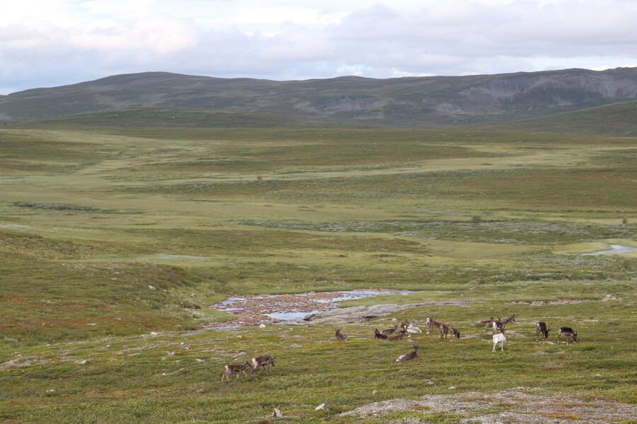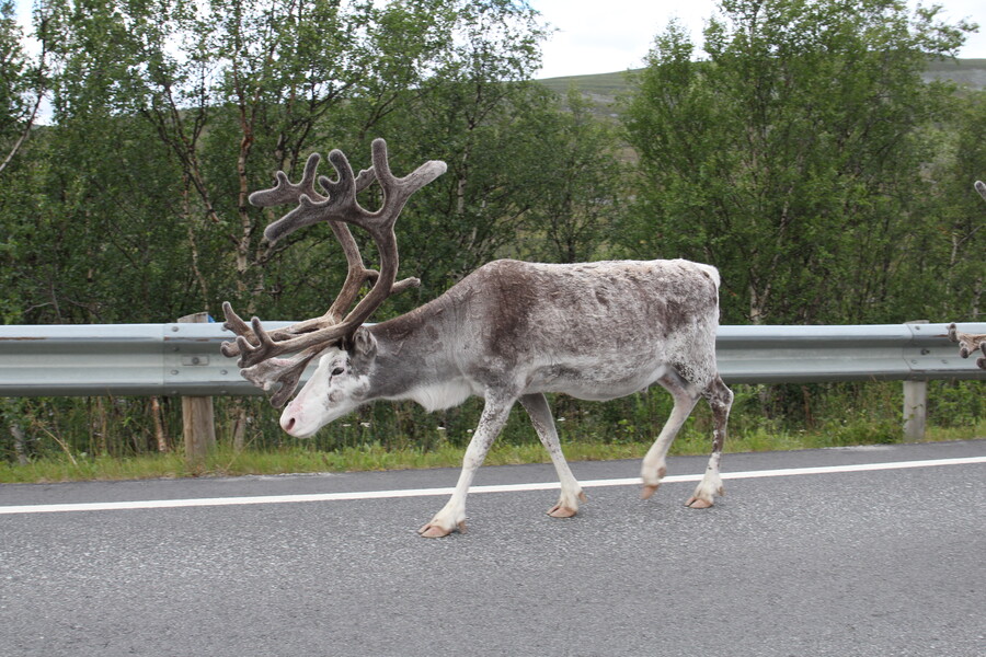 Nad ranem budzą nas dzwonki stadka baranów, które przechodzi obok. Sprawdzamy informacje o zamkniętych odcinkach dróg. Czytamy: „Powodzie, liczne osunięcia ziemi, zamknięte drogi, uszkodzone mosty kolejowe i zapora wodna. Sytuacja pogodowa w Norwegii jest dramatyczna. Władze ewakuują mieszkańców.” Te wiadomości zniechęcają nas do dalszej podróży na południe Norwegii. Odpuszczamy Drogę Trolli, bo obawiamy się, że nie będzie jak stamtąd wrócić. Kierujemy się więc na Szwecję po drodze mijając niezliczoną ilość reniferów.