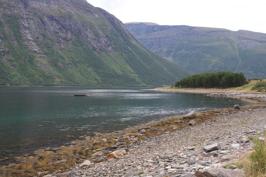 Na nocleg ruszamy już na południe Norwegii i zatrzymujemy się wzdłuż drogi nad zalewem. Jak się okazuje, miejsca nad tym zalewem cieszą się popularnością wśród kamperowców i namiotowców, ale udaje nam się znaleźć również dla nas ładne miejsce.