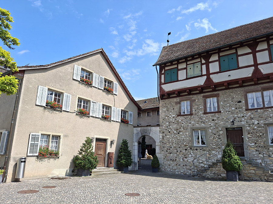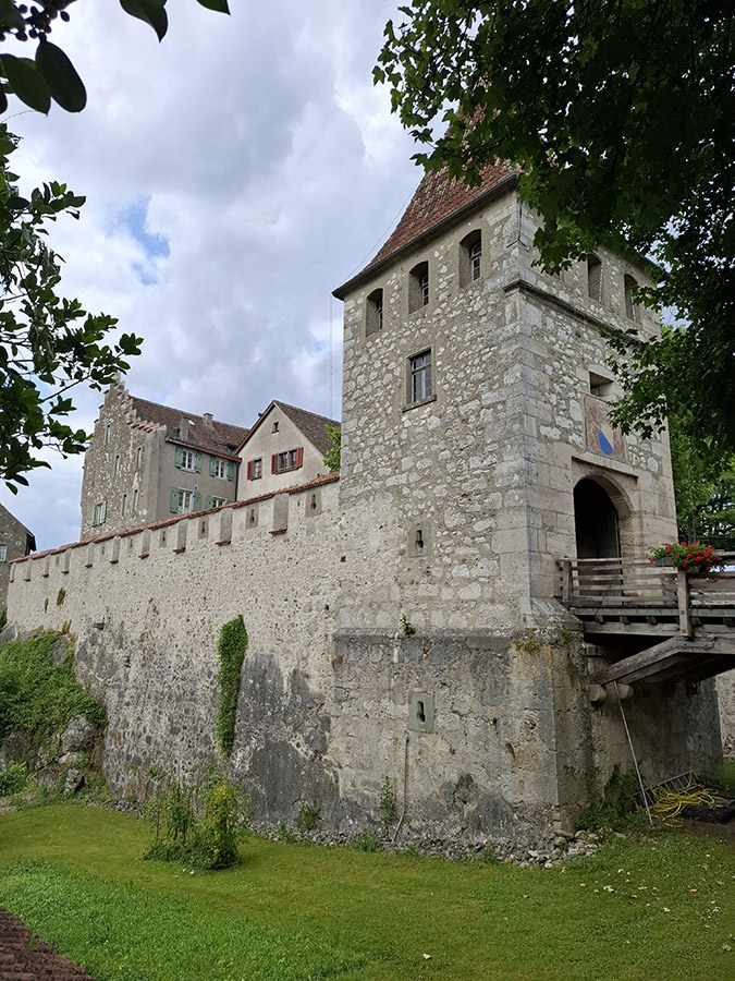 Aby dojść do punktu widokowego, trzaba przejść przez malowniczy zamek Laufen