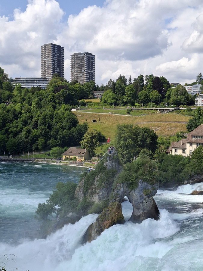 Od przekroczenia granicy dzieli nas już tylko 3 km do Rheinfall. To największy pod względem przepływu wodospad Europy. Położony jest na przełomie Renu w miejscowości Neuhausen am Rheinfall.