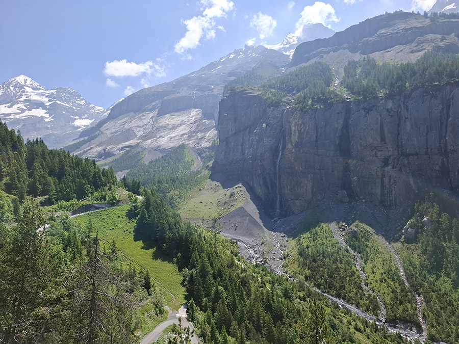 Tuż obok parkingu samochodowego znajduje się największy wodospad w Szwajcarii Mürrenbachfall o wysokości 417 metrów