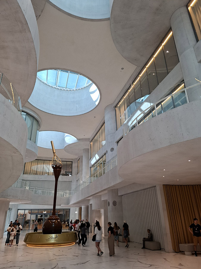 Największa na świecie fontanna czekoladowa znajduje się na holu Domu Czekolady Lindt - można ją zobaczyć całkowicie za darmo!