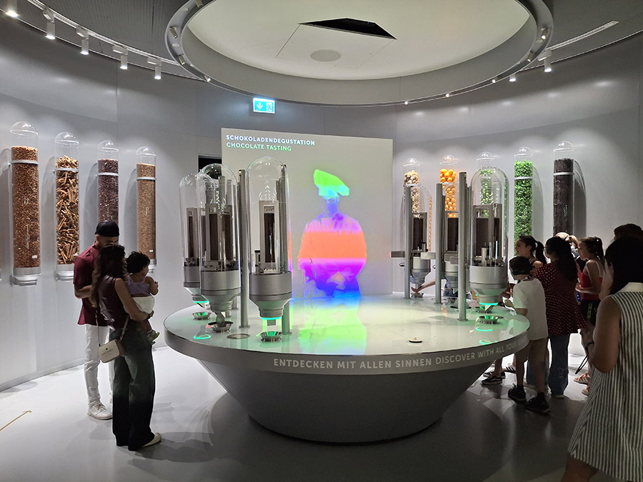 W jednej z sal można obejrzeć reklamy czekolad Lindt, np. z udziałem Rogera Federera. Jest tu też ogromny globus. Gdy nim kręcimy i wybieramy Polskę możemy przeczytać dane statystyczne dotyczące spożycia czekolady przez Polaków. Całe muzeum jest nowoczesne i pełne interaktywnych eksponatów.