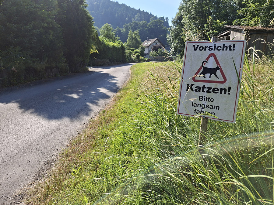 Po drodze na Kemping mijamy dwa znaki przestrzegające kierowców "Uwaga kot!"